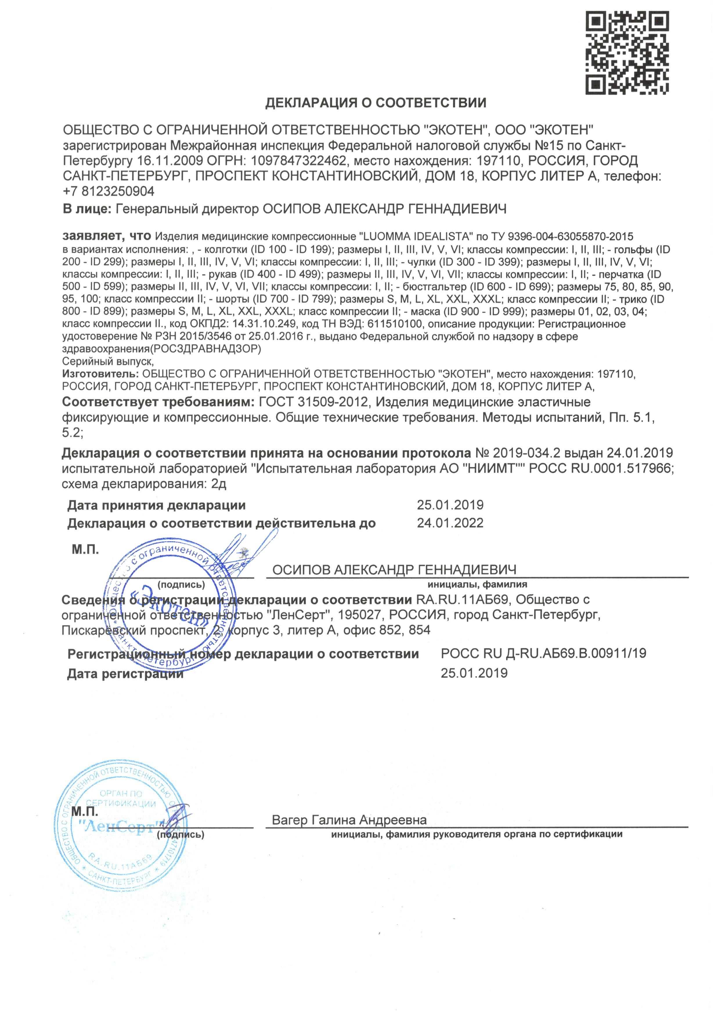 • классы компрессии: 1 класс (18-21 мм рт.ст.)