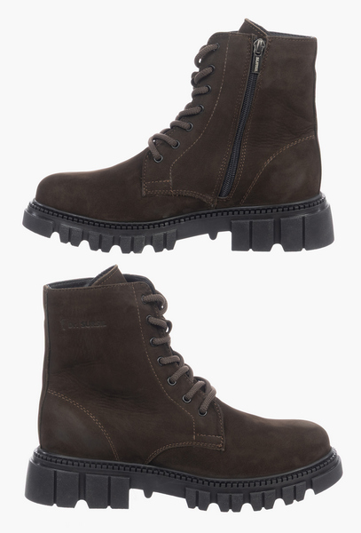 Сдержанный, но дерзкий вид ботинок сделает ваш образ собранным и смелым. Конструкция верха выполнена из тактильно приятного нубука, отлично защищает от холода и ветра. Внутренняя подкладка из байки сохраняет тепло и при этом пропускает воздух, позволяя коже дышать. Вкладная ортопедическая стелька мягко поддерживает своды и снимает нагрузку на суставы во время ходьбы. Фронтальная часть оснащена шнуровкой и молнией сбоку для ускорения надевания обуви. Формоустойчивый задник фиксирует задний отдел стопы и останавливает заваливание. Тракторная высокая подошва отлично защит от холода и придаст каждому шагу энергии и устойчивости. Наденьте их — и вы готовы преодолеть любые преграды.